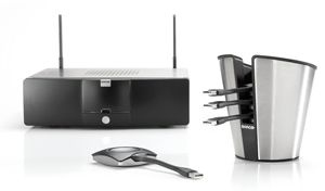 一套标准的ClickShare包含四个USB驱动设备(即“ClickShare Button”)、一个用于整齐存放闲置Button的存贮篮(即“ClickShare 托盘”)和一个基本设备。基本单元与会议室的可视化系统固定连接,负责所有所需的处理。用户想要在会议室大屏幕上投放演示稿时,只需简单地将 Button 连接到他们的 PC 或 MAC。然后启动应用程序,单击 ClickShare Button,用户的桌面即刻通过无线方式切换到大型可视化系统。不仅如此,ClickShare也不会影响笔记本电脑的分辨率,并能以最佳的方式自动显示屏幕内容。
